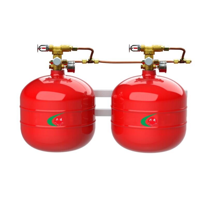 The suspended gas fire extinguishing device is a constant-temperature type; when a fire occurs in the protected area, the temperature-sensing component activates, causing the device to release the extinguishing agent. Since the device is installed on the walls surrounding the protected area, it does not occupy floor space.